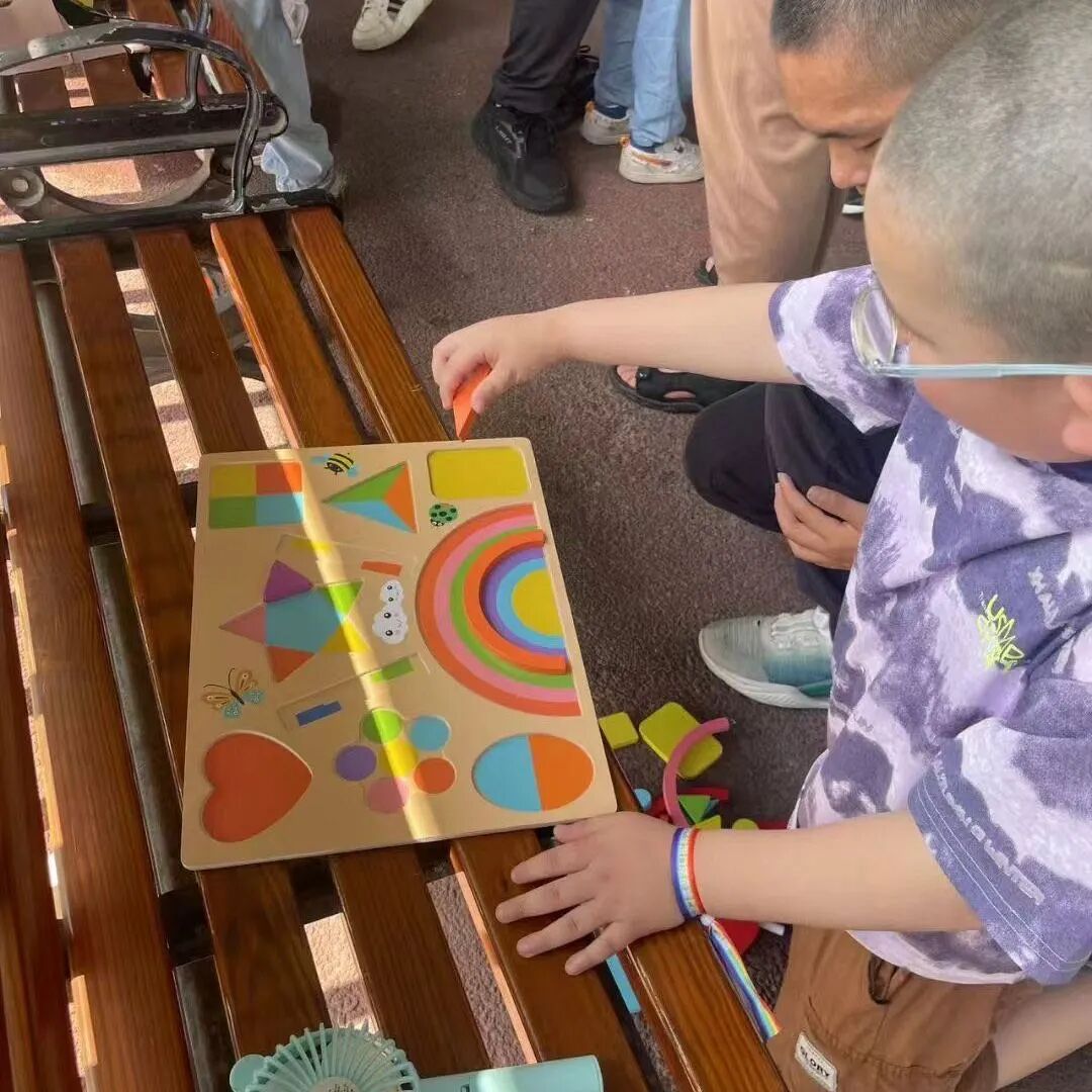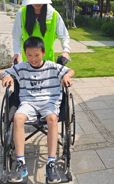 在体验残障任务的时候,小鹏坐上了轮椅,一个阿姨来推他,志愿者过来告诉我们,说,小鹏要自己推动轮椅。有一句话是这样说的:你比自己想象的更强大,小鹏就是这样,他推动自己绕了一圈,非常不简单。